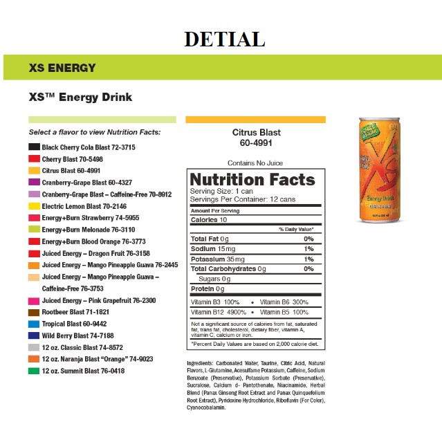 Xs energy drink cranberry grape blast 4 packs of 6 cans features sugar free great tasting energy drink.