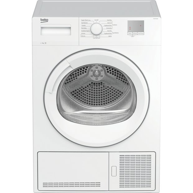 The affordable dtgce7010w condenser dryer from beko has room in the drum for around 7kg of laundry which should be enough for most homes and it uses sensors to control drying times.
